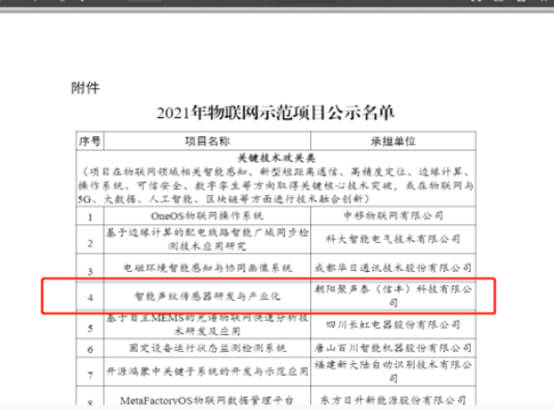 其中朝陽(yáng)聚聲泰(信豐)科技有限公司-智能聲紋傳感器研發(fā)與產(chǎn)業(yè)化項(xiàng)目上榜,是榜上為數(shù)不多的非上市企業(yè),也是江西省上榜的五個(gè)項(xiàng)目之一。